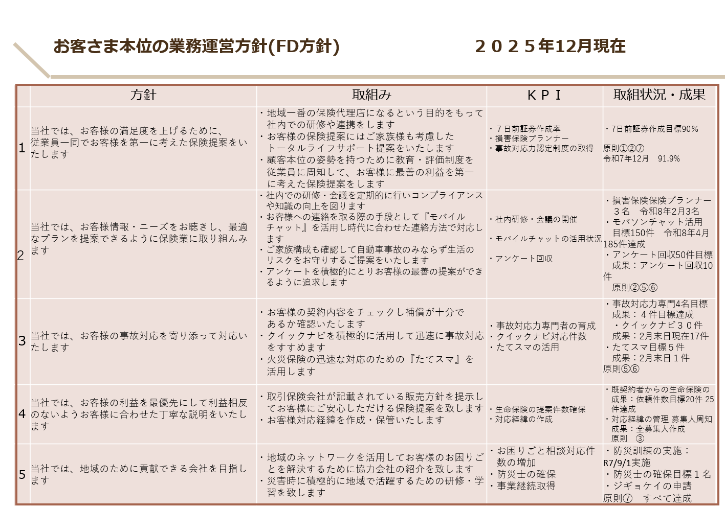 ▢有限会社 田中保険事務所方針▢ 令和7年4月1日作成